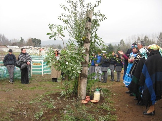 en torno a la araucaria suele formarse el rehue para el nguillatún. También el "pino santo" suele reunir en su derredor a los que llevan a cabo la rogativa,