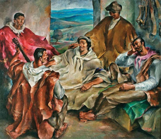 A través de la extensa obra expuesta se pueden observar los cambios del artista, su búsqueda, sus cuestionamientos y hasta sus indecisiones, que son las búsquedas, los cambios y las indecisiones de las artes visuales de la Argentina entre las décadas del 30 al 50. Hay un camino que va desde el impresionismo fadereano (casi diría un academicismo para la época) hacia una búsqueda más autentica de interioridad identitaria. ¿No se lo ve con Leopoldo Marechal en una foto? Evidentemente no fue una casualidad. El buceador de "Adán Buenosayres" fue el paradigma de la reflexión sobre lo nacional en los años que desembocan en la gran transformación del 45 de la que participaron valiosos hombres de las artes y las ciencias