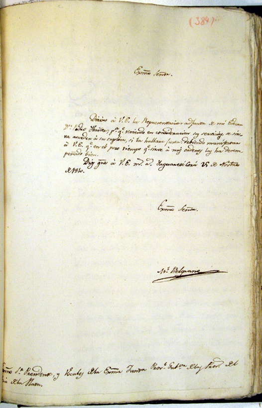 "Don Manuel Belgrano, Coronel de los Reales Ejércitos, Vocal de la Exma.