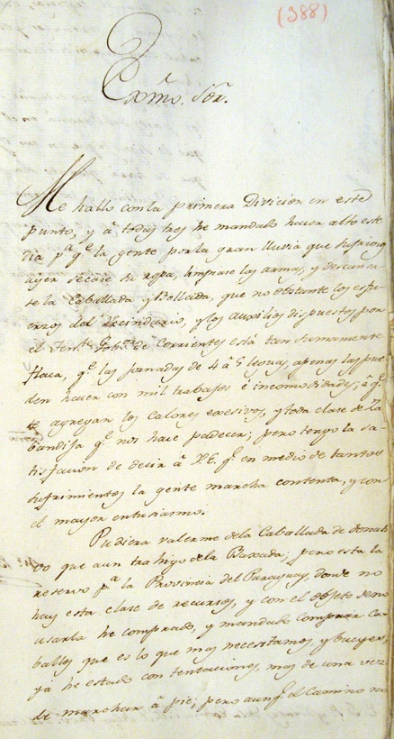 Así pues no extrañe V. E. el que no llegue a los pasos del Paraná en el