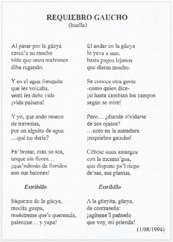 Hermosa costumbre esta de don Risso de publicar belleza con forma de cuarteta, sextina y décima. ¡Y en nuestra lengua gaucha!