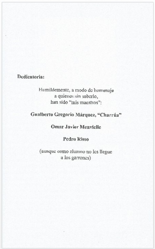 Risso "lujea" con dos formas distintas de pie forzado en "Como ñudo potriador" y "Trenza` e diez" y con el título "Dicen los amigos" da a conocer dos cartas que, con justificados elogios hacia sus libros, le enviaron Jorge Danilo Vega (en verso) y Danilo Isasa (en prosa).