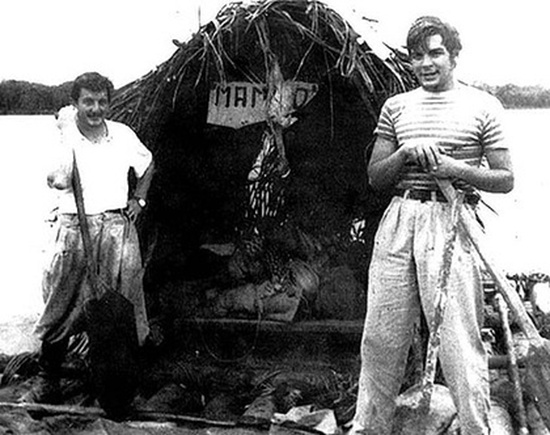 Ernesto Guevara y Alberto Granado arriba del Mambo-Tango en el río Amazonas en junio de 1952