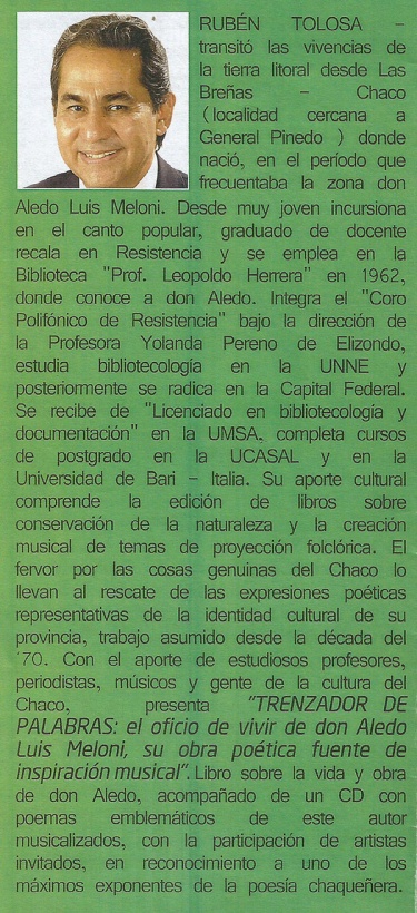 2) "En lo puro del día" - canción - Letra: A.L.Meloni-Música e intérprete: Rubén Tolosa - Recitado: Benedicto Antonio Falcón.