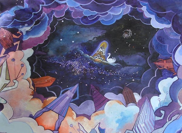 nacimiento del charango" es un cuadro basado en una imaginería de Tati Lazo,