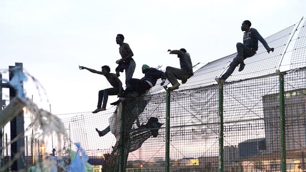 Africanos saltando hacia territorio europeo