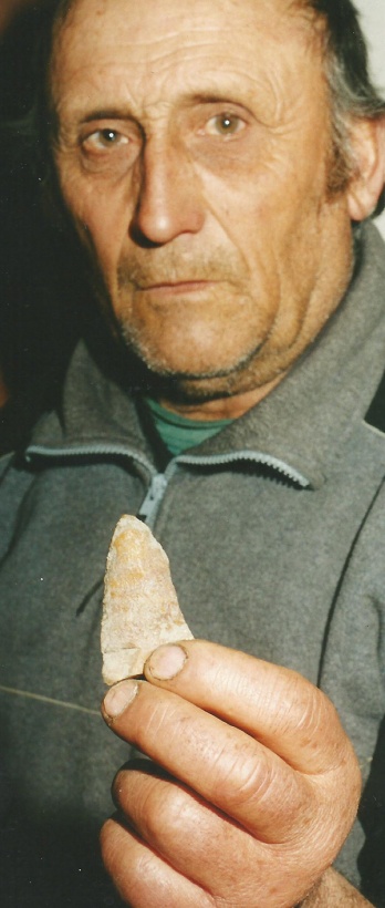 José Secco muestra una punta de flecha, hallada por él andando esos campos