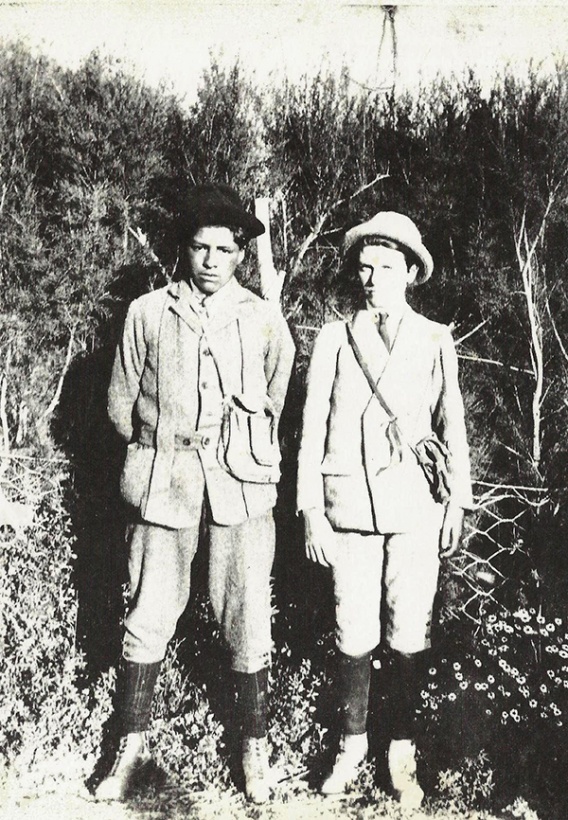 Gregorio Nahuelquir y Gwilym Iwan, compañeros de escuela. Foto tomada alrededor de 1915 por un fotógrafo del que no hay datos