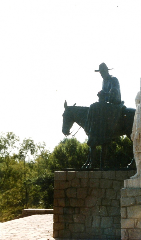 Este monumento a San Martín ubicado en el paraje Manzano Histórico (Tunuyán, Mendoza) es, de los emplazados en territorio argentino, el que más cálidamente muestra a nuestro Libertador de América. A lomo de mula, de poncho y chambergo y saludando a su antiguo soldado diciéndole ¡hijo! (Foto: Ricardo Acebal)
