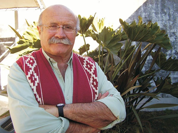 la curiosidad de su interlocutor. Sobre la curtida mesa de madera apoya un