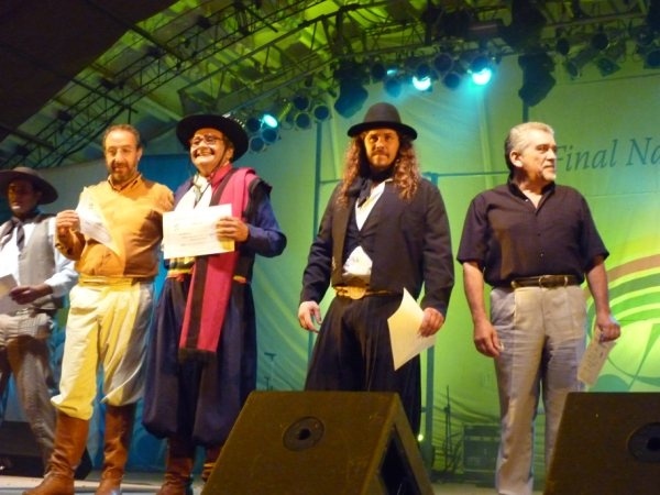 Carlos Arancibia -primero de derecha a izquierda- en el escenario del Festival de Baradero (Pcia.Bs.As.)