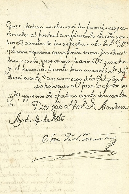 Dios guarde a Usted. muchos años. Mendoza. Agosto 14 de 1816
