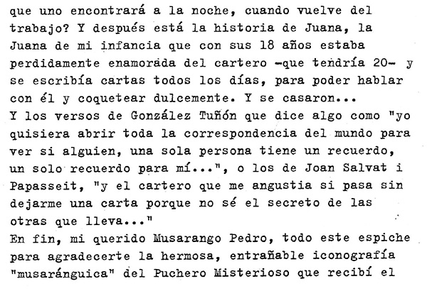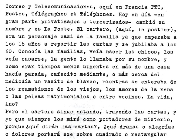 poco por aquel lamento de mi amigo ("¡Ya nadie escribe cartas, Emilio!") y otro