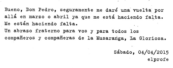 colaboración y, a modo de complemento a su misiva, aporta esta carta que fue