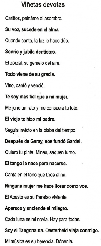 Gardel, añoso/ con el cabello canoso,/pero tenerte, tenerte", seguir ¿porqué