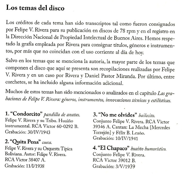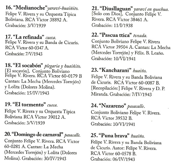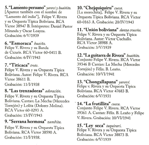 1: "Chongallapana" (yaraví) y "Esmoraca" (huayño)