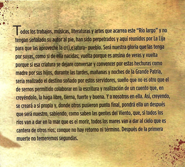 "sustrato ideológico" (¡paaa!) de los lijas y que los hizo grabar "Río Largo" (¡Agárrese