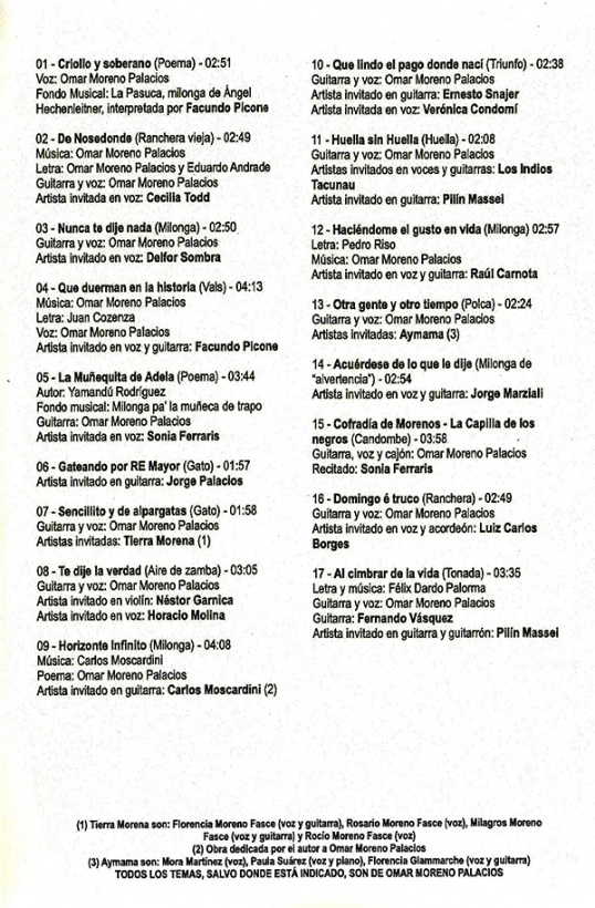 Rodríguez) con Sonia Ferraris y "Huella sin huella" con Los Indios Tacunau.