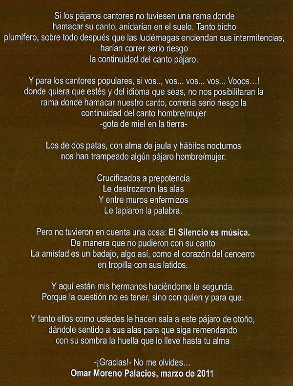 tocada por otro lagunero, Facundo Picone, Omar nos dispara su poema "Criollo y