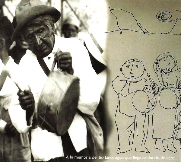 La foto del "tataratío" Lino del álbum familiar y los dibujos de Guantay