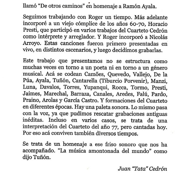 temas, salvo "El cachapecero", "Los bueyes" y "La cachila", es de Juan Tata