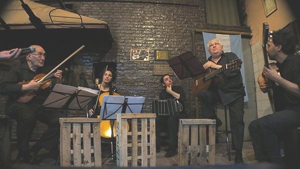 Praino, integrando el Cuarteto Cedrón, en "La Panadería" de Burzaco, el 21-11-16.
