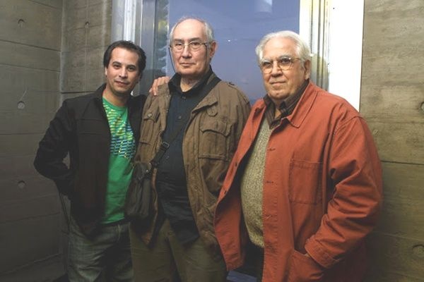 En Biblioteca Nacional, año 2011: Fernando Pérez, director de "Tata Cedrón, el regreso de Juancito caminador", Praino y Tata Cedrón (Foto: José Ludovico).