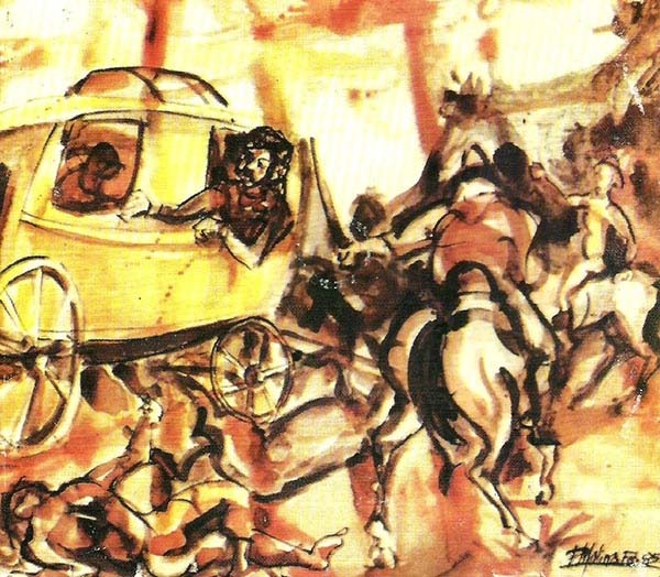 Ilustración para la "Cantata Riojana", de Gatica y Navarro: El momento del asesinato de Facundo.