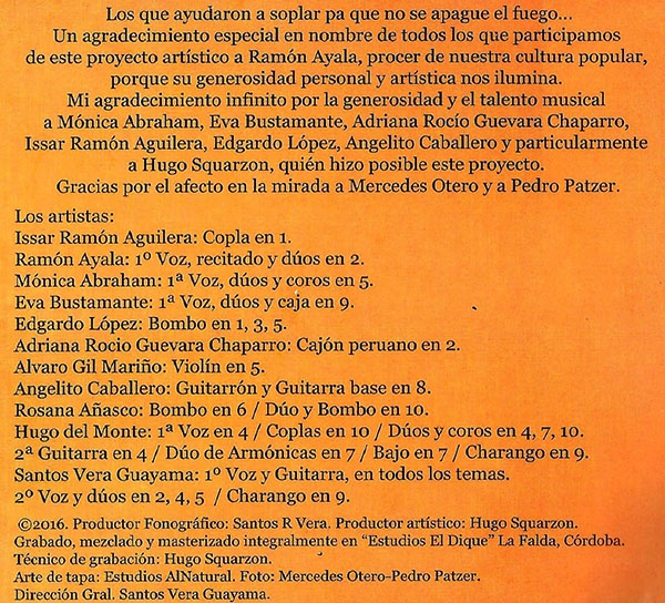 artistas que acompañan en cada uno de los temas a Santos Vera Guayama yotros