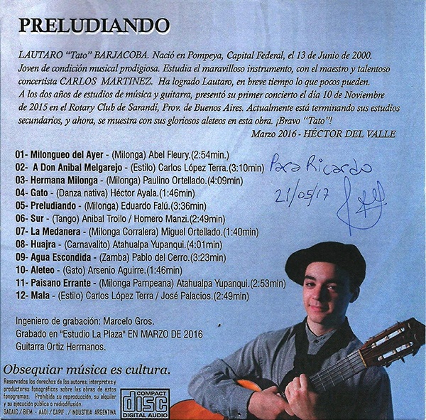 Y...sí. El gurí me dedicó su disco el 21-5-17. Y ¿quién soy yo para no compartir esa dedicatoria con usted?