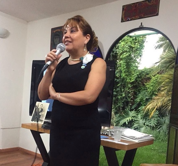 Graciela Almada, locutora, muy destacada voz de Radio Nacional (Argentina) en Puebla, presentando su libro.