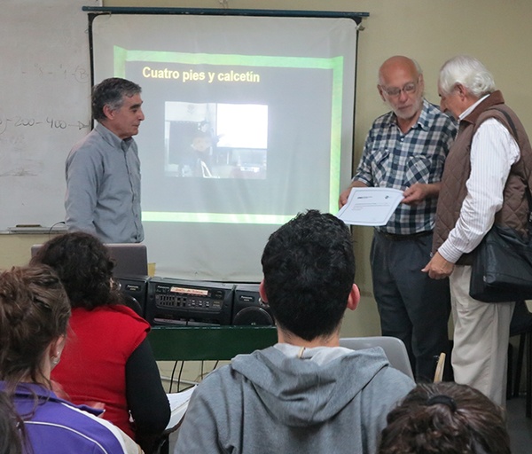Los profesores Abel Anibal Zabala, Ricardo Acebal y Alberto Sorzio conduciendo una clase especial sobre Payadores en el Area Folklore de la UNA (Universidad Nacional del Arte). Foto: Rafael L. Gindin.