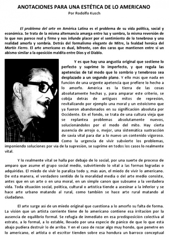 un arte nacional y americano. Además quien lo desarrolló maravillosamente fue Rodolfo Kusch en "Anotaciones para una Estética de lo Americano" que tendrían que