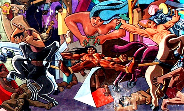 muralista y dibujante) se realiza en el marco del Contrafestejo del 12 de Octubre y la resistencia de los pueblos