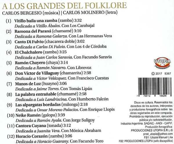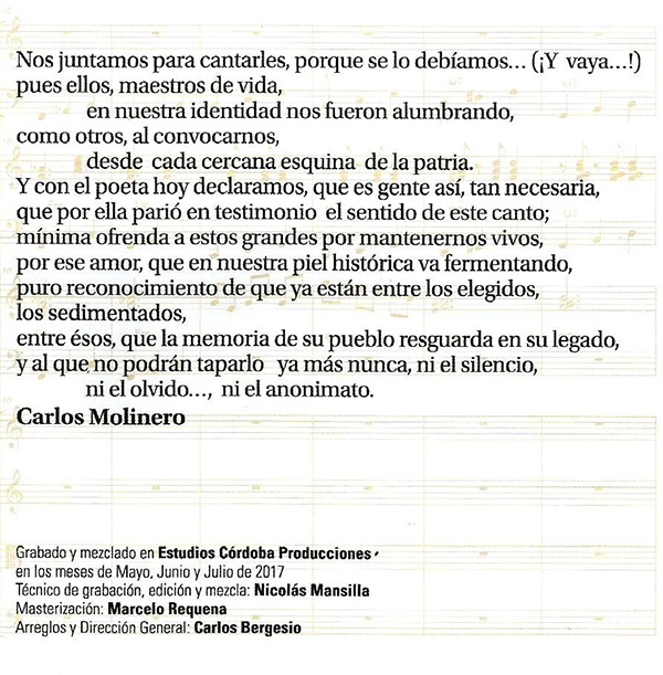 Carlos Bergesio, cantor, compositor y homenajeador. Ciudadano destacado en su pago natal: San Francisco, Provincia de Córdoba.
