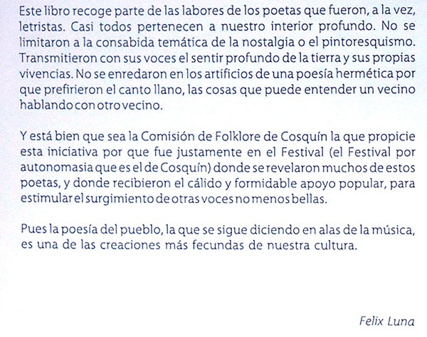 esta colección de "Los poetas que cantan"! editada por la comisión que organiza