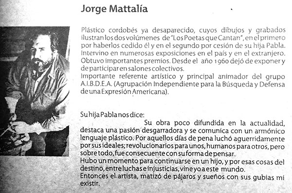 llamado "Destino del Canto") más tintas y xilografías de Jorge A. Mattalía.
