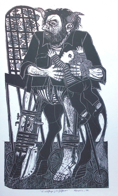 "El xilógrafo y los pájaros" Xilografía de Jorge Mattalía.