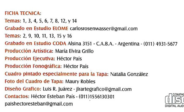 compacto, la que muestra un cuadro especialmente pintado para la tapa por Natalia González, con foto de Maury Robles y diseño gráfico de Luis R. Juárez.