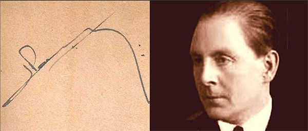 Héctor Pedro Blomberg y su firma (autógrafa, en un ejemplar de "Cancionero Federal", año 1934).