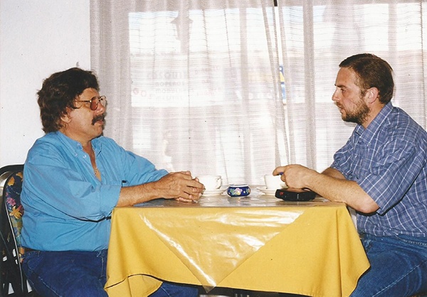Raúl Vigini entrevistando a Ramón Ayala en Cosquín 2000 (Foto: Ricardo Acebal)