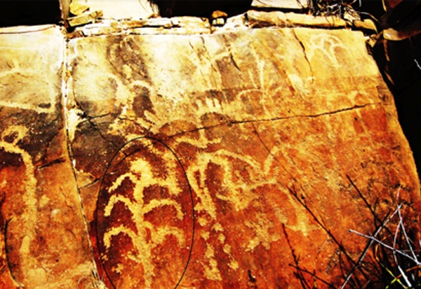 El maíz presente en los petroglifos (pinturas en las piedras) que realizaron nuestros antepasados hace miles de años. El que se muestra es de Huizachal, México.