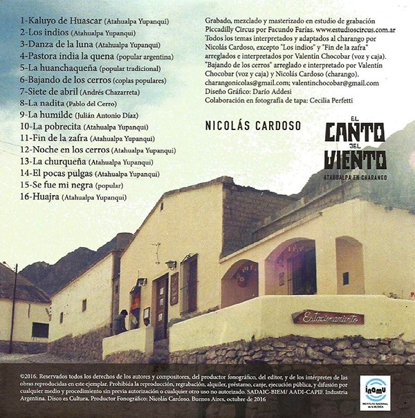 indios" y "Fin de la zafra" arreglados e interpretados por Valentín Chocobar (voz y caja) y Nicolás Cardoso (charango). "Bajando de los cerros" arreglado e
