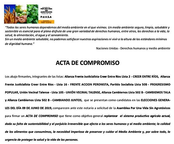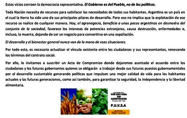 la Asamblea "Por Una Vida Sin Agrotóxicos" (Rosario del Tala, Entre