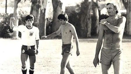 Horas y días de ensayos, en José C. Paz. Menotti con Diego y Hugo Alves. Ambos alternaban prácticas en la Selección mayor, junto a otros pibes.