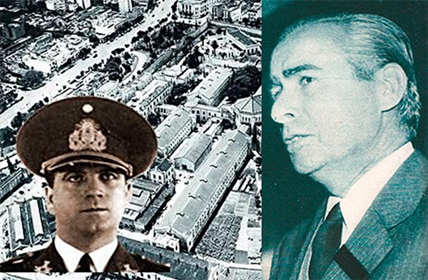El general Juan José Valle (como fondo la ex cárcel de Avenida Las Heras, donde fue fusilado) y el general Raúl Demetrio Tanco.