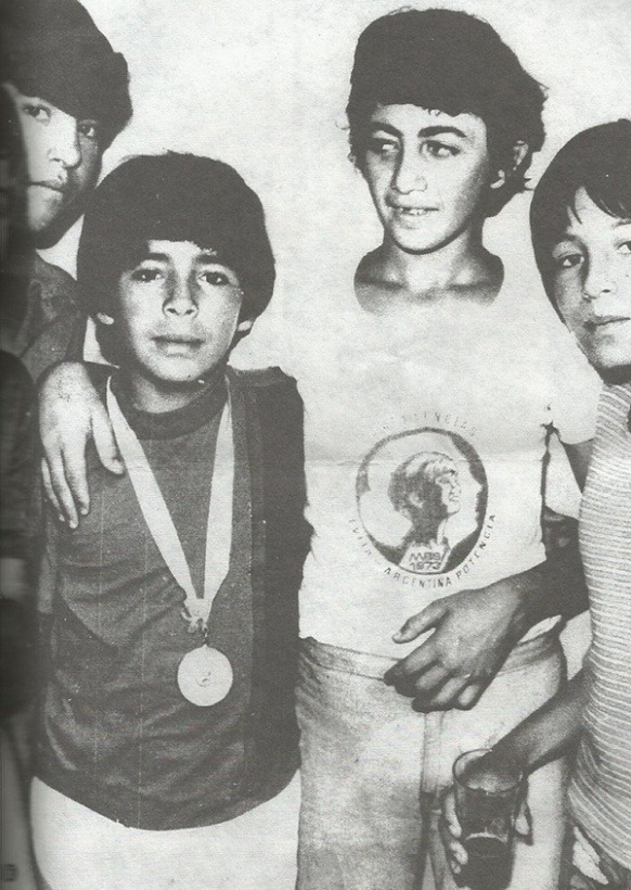 Dieguito "Pelusa" Maradona y todo el plantel de los Cebollitas Porteños fueron invitados a Pinto y allí viajaron, dos meses después de que los chicos santiagueños les ganaran en las semifinales de Embalse 1973. Aquí Diego con el mayor de los hermanos Ganem.