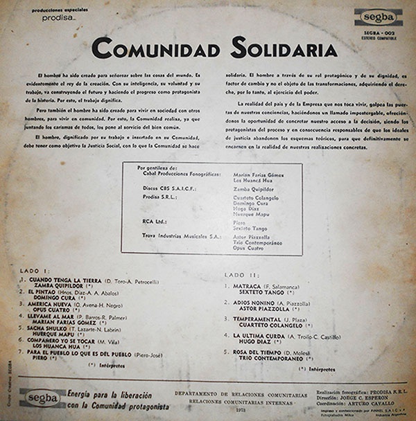 los artistas que participaron de este disco: Marián Farias Gómez, Los Huanca Huá, Zamba Quipildor, Cuarteto