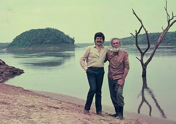 Ramón Ayala y el poeta Carlos Martínez Alba junto al Río Paraná próximo a Posadas, Misiones. (Foto: Ricardo Acebal)