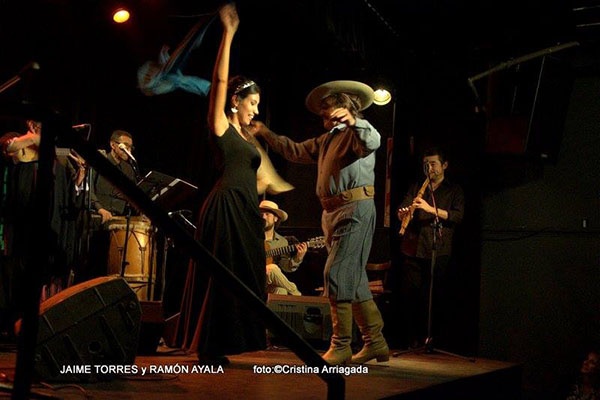 Ramón bailando con Manuela Torres en el escenario del "Torquato Tasso", Ciudad de Buenos Aires,el 30 de octubre de 2015. (Foto: Cristina Arriagada)